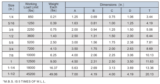 Size: 1/4'' , 5/16'', 3/8'', 1/2'', 5/8'', 3/4''
